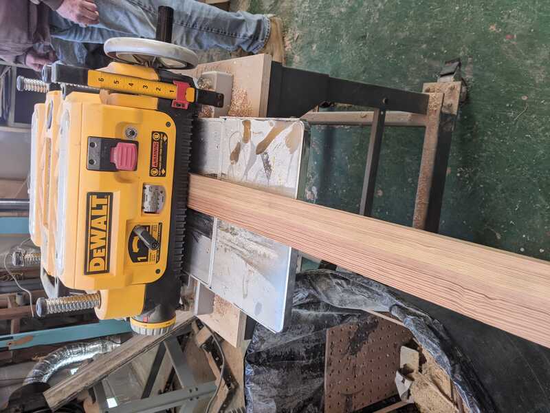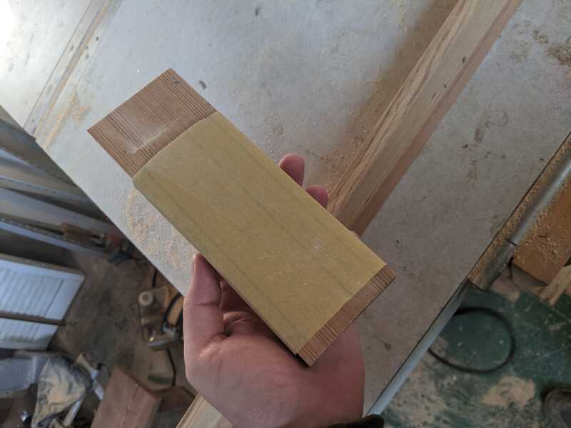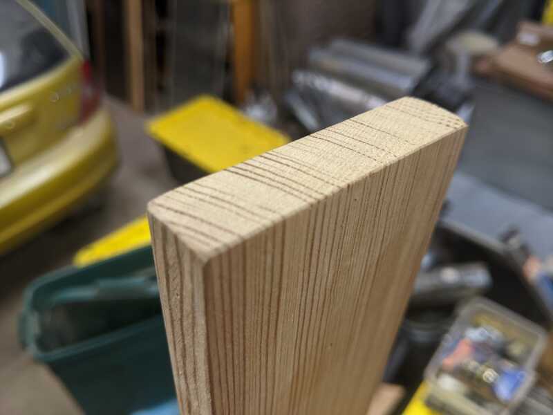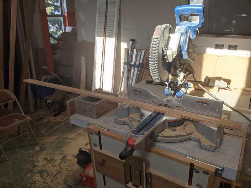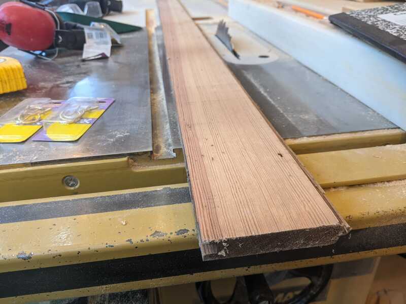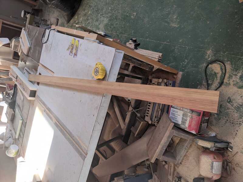 I used an old piece of flooring that my dad had laying around. This meant that I needed to rip down the sides before beginning. The wood is pretty, but not perfect.