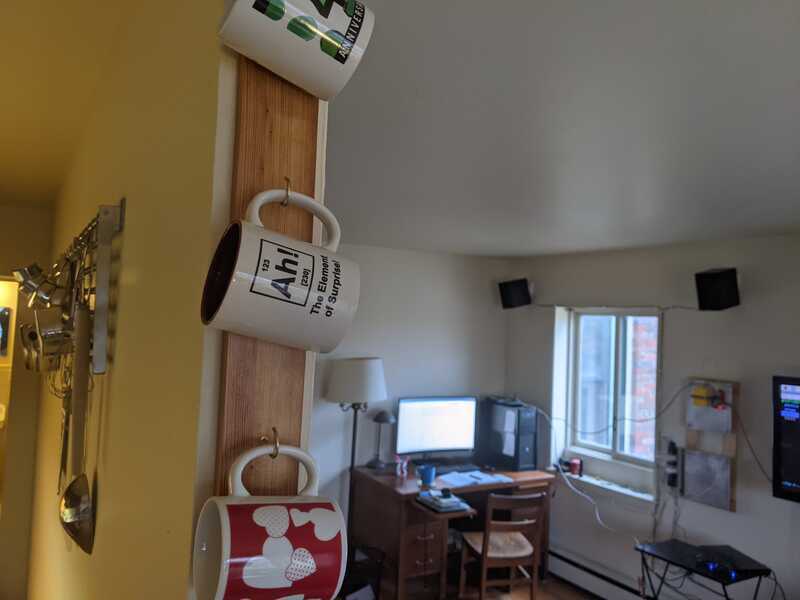As designed, the mug holder works great on the end of the awkward thin wall that divdes my kitchen and living room. Given how little storage space I have in the kitchen, it's a real help. Plus it's a nice way to display my mug collection!